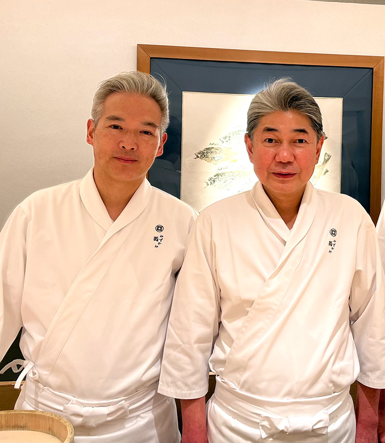 お客様のペースで召し上がっていただけるよう二人の職人が握る…