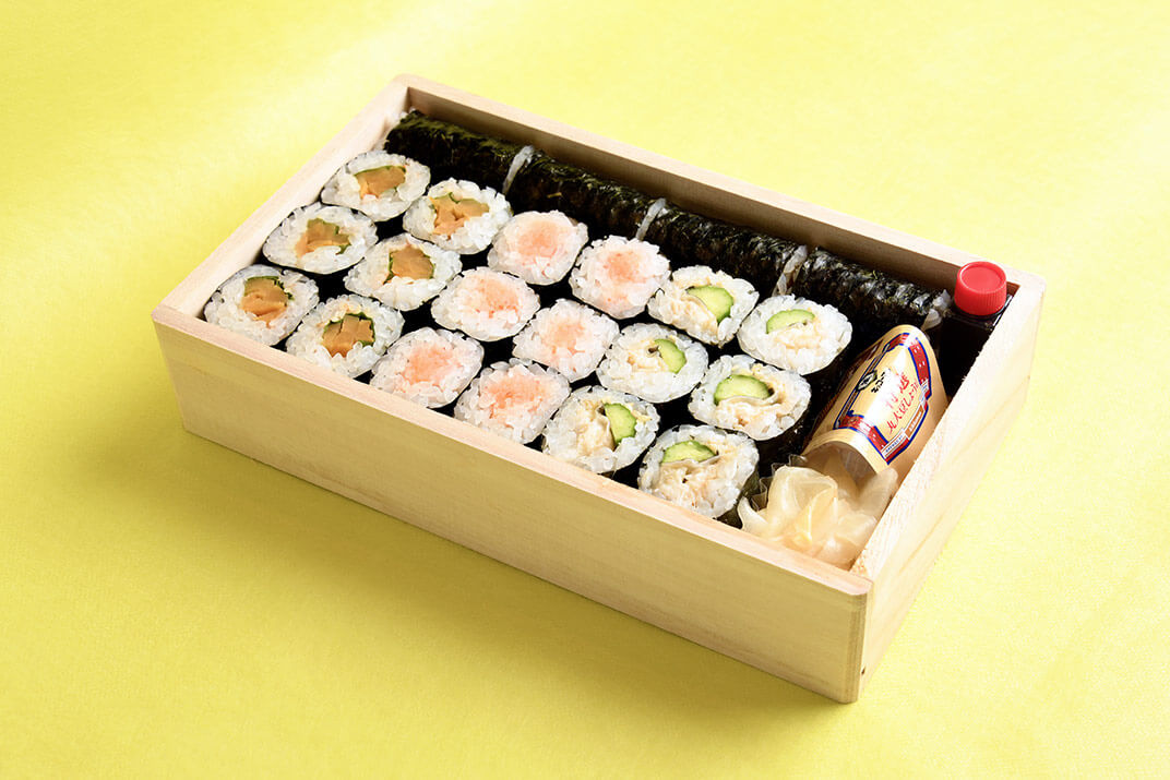 (干瓢、江戸前おぼろ、穴子胡瓜、梅しそ胡瓜、梅しそ沢庵)